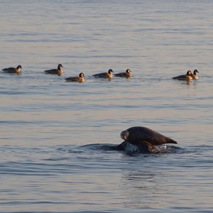 Vi sejler ud i Øresundsakvariets store gummibåd og sætter kursen mod den svenske side af Øresund, hvor vi ved at de nysgerrige sæler holder til i ret store flokke. Vi får følgeskab af Øresundsakvariets havbiologer og naturvejledere m.m., der vil fortælle og underholde om den spættede sæls liv i Øresund.